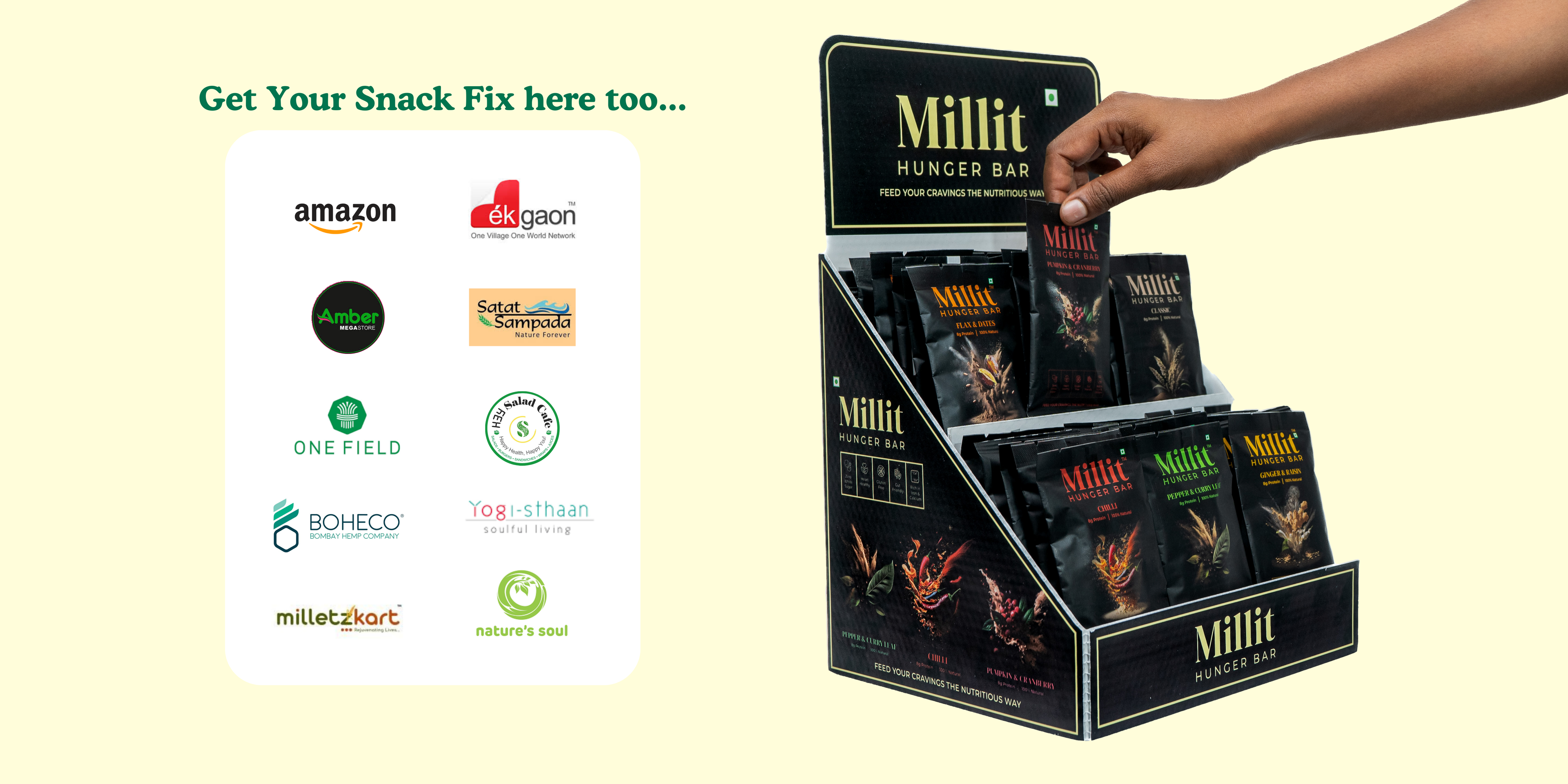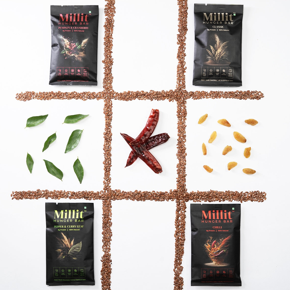 Research shows that 4 to 6 pm is when we crave junk food. Satiate those cravings with a delectably healthy snack. Get rid of the junk, get yourself a Millit Hunger bar.