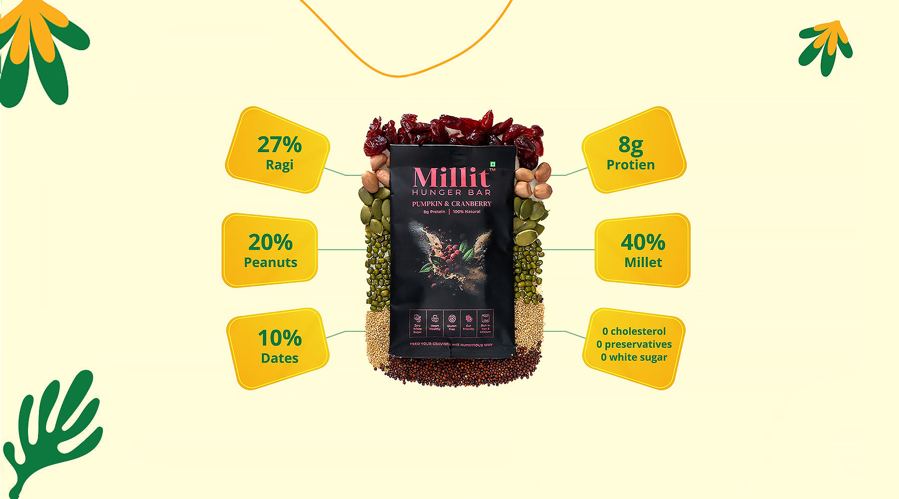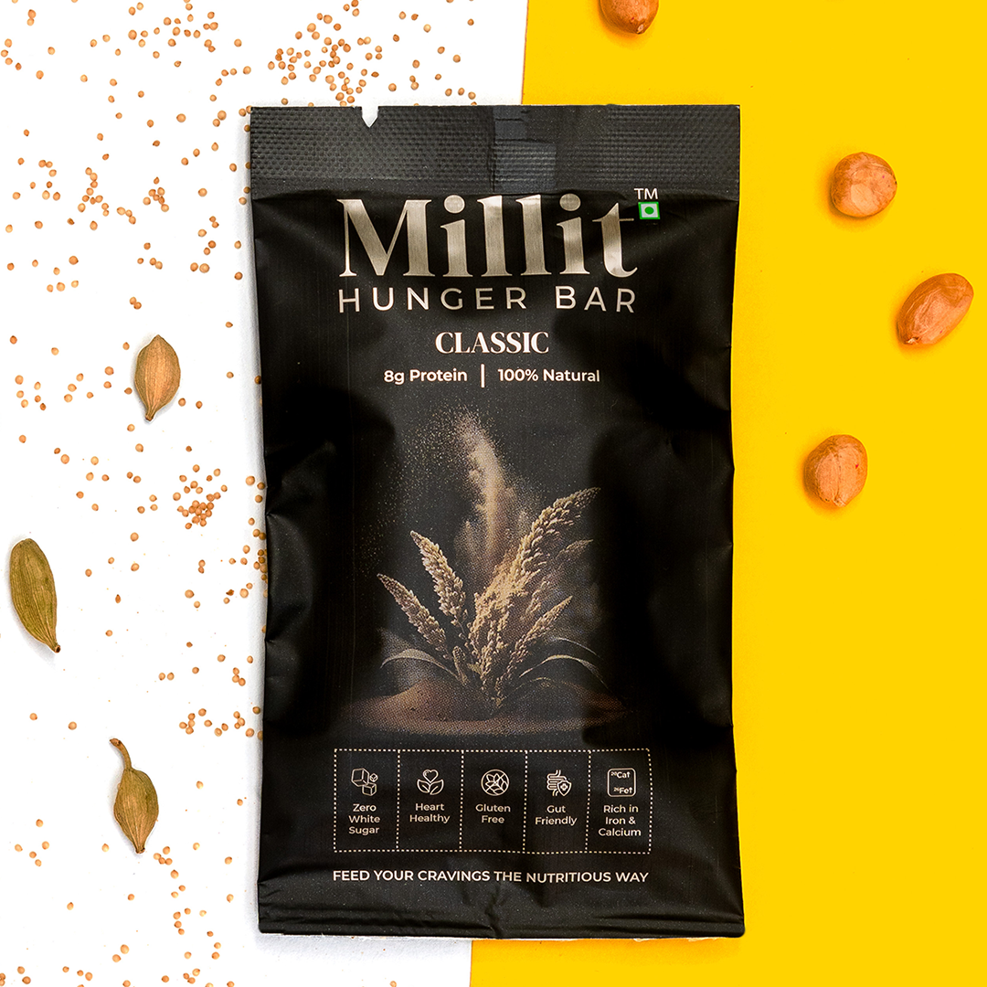 That busy schedule made you miss a meal again? Just grab a Millet Hunger Bar, it's got all the nutrients you need to fuel that fire. (Lowkey, it's a whole meal)